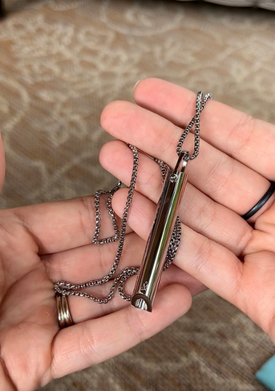 Priložen je praktičen verižica, zato jo lahko nosite kot ogrlico ali jo spravite v žep — olajšanje je na dosegu roke v samo nekaj sekundah.