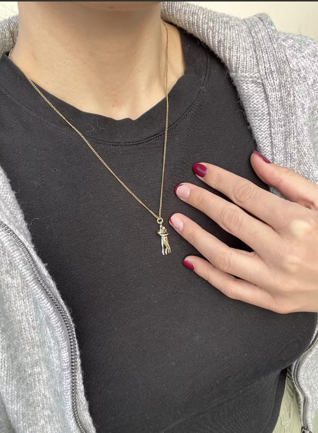 Moja žena je bila navdušena nad ogrlico! Simbol objemajočega se para je bil posebej ganljiv. Nosi jo vsak dan. Z veseljem priporočam! ❤️